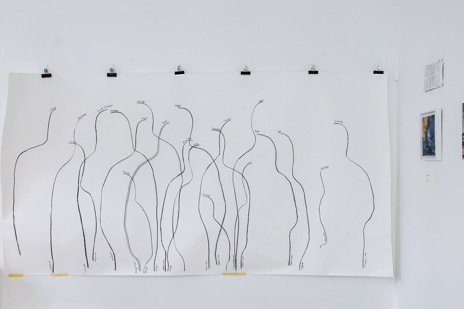 Across six hours, I traced the outlines of 48 people recording their family name and where they felt represented home for them.